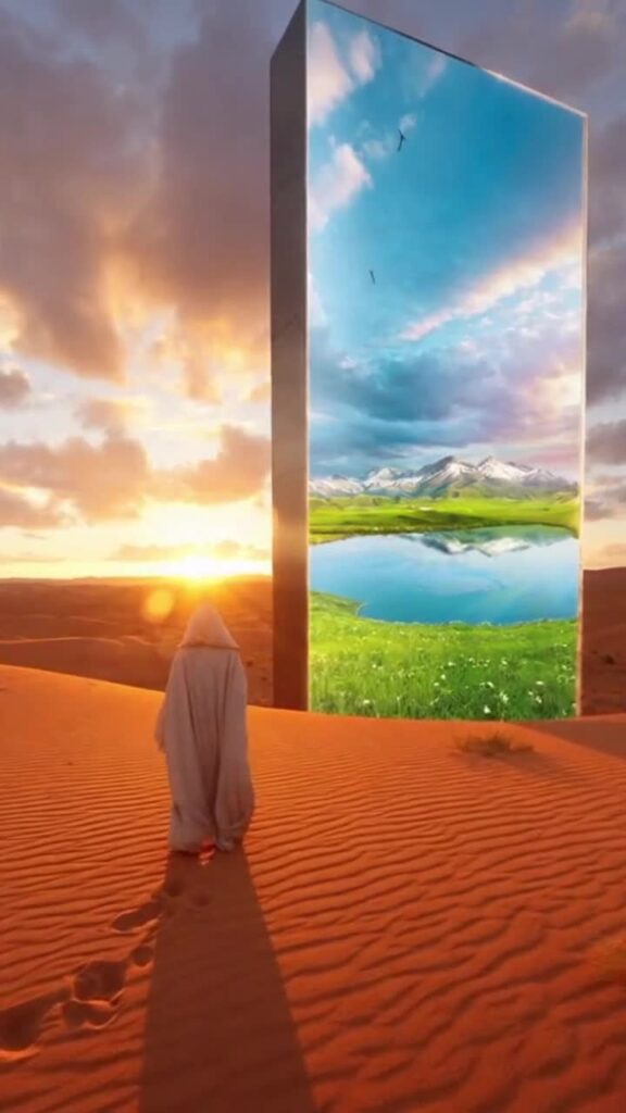 砂漠に出現した巨大な鏡の壁。そこに現...