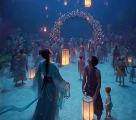 A festival held underwater with lanterns floating upward, jellyfish illuminating the crowd, surreal 4K.